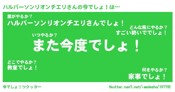 | 欧米人風あだ名 | 『マイケルハルバーソンリオンチエリ』 |