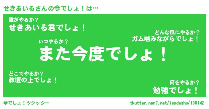 | 伝説のあだ名 | 『封印されしスナイパーせきあいる』 |