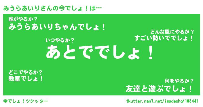 | 胡散臭い通販商品みたいなあだ名 | 『モテモテ間違いなし霊験あらたかなお札…その名も「みうらあいり」』 |
