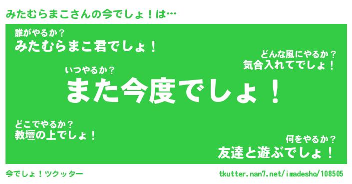 | 伝説のあだ名 | 『封印されしスナイパーみたむらまこ』 |