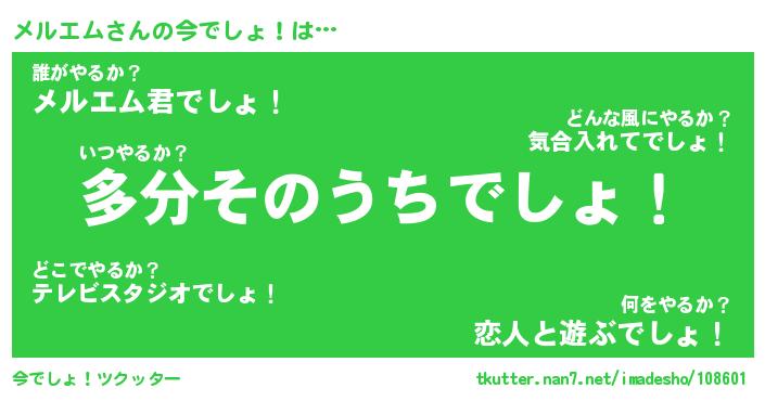 | ヘコむあだ名 | 『メルにゅー』『豆乳』『メル太郎』 |