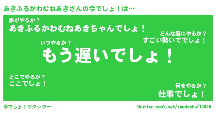 | 胡散臭い通販商品みたいなあだ名 | 『必ず成功する霊験あらたかなお札…その名も「あきふるかわむねあき」』 |