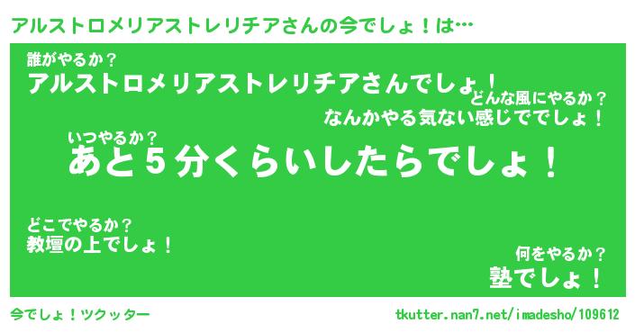 | ツイッター | アルストロメリアストレリチアさんのツイッターID『dendenmushi_man』 |