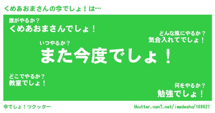 | ファンタジー風あだ名 | 『クメフェル』『エターナルクメアオマー』 |