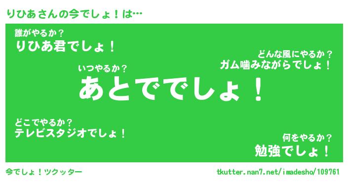 | ヘコむあだ名 | 『りひにー』『なまこ酢』『りひお』 |