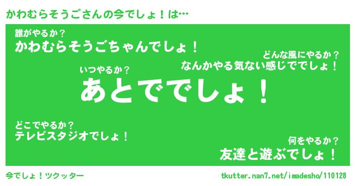 | ツイッター | かわむらそうごさんのツイッターID『dendenmushi_kun』 |
