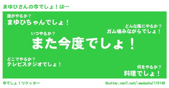 | ヘコむあだ名 | 『まゆにー』『酢こんぶ』『まゆ太郎』 |