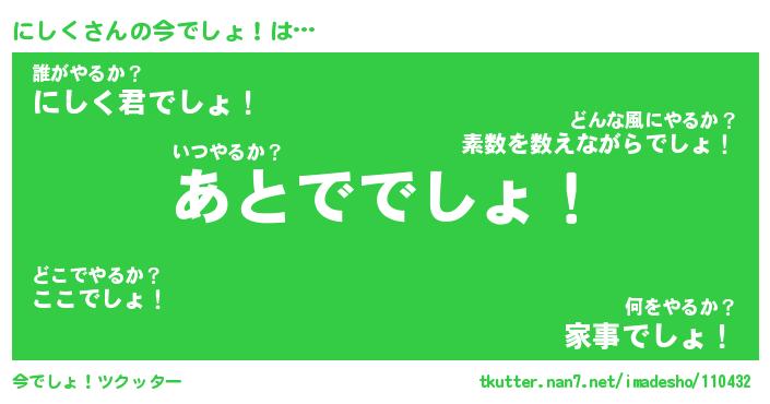 | ヘコむあだ名 | 『にしふぇ~』『なまこ酢』 |