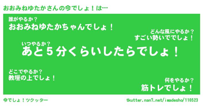 | 恥ずかしいあだ名 | 『プリティーおおみねゆたか』『おおちん』 |