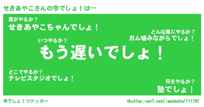 | 恥ずかしいあだ名 | 『プリティーせきあやこ』『せきっちょ』 |