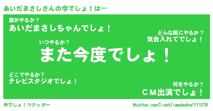 | 肩書あだ名 | 『あいだまさし店長』『あいだまさし団長』 |