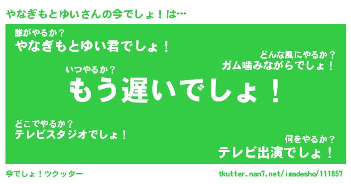 | 恥ずかしいあだ名 | 『プリティーやなぎもとゆい』『やなちん』 |