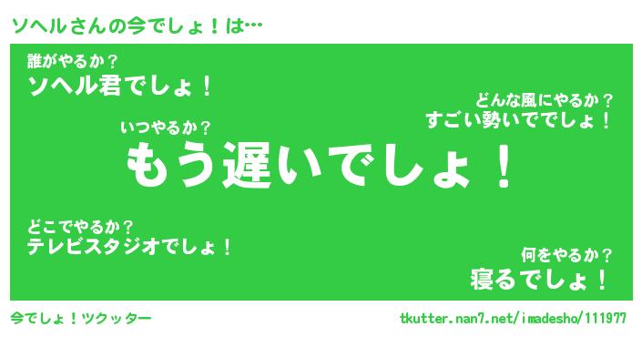 | 肩書あだ名 | 『ソヘル店長』『ソヘル総理大臣』 |