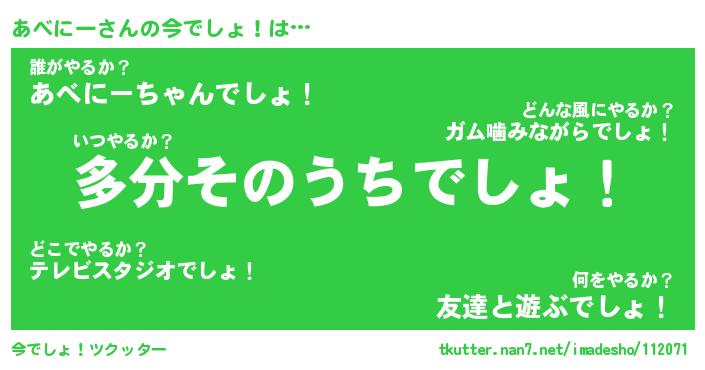 | 意味不明あだ名 | 『ペロリンあべにー』『永久保存あべにー』 |