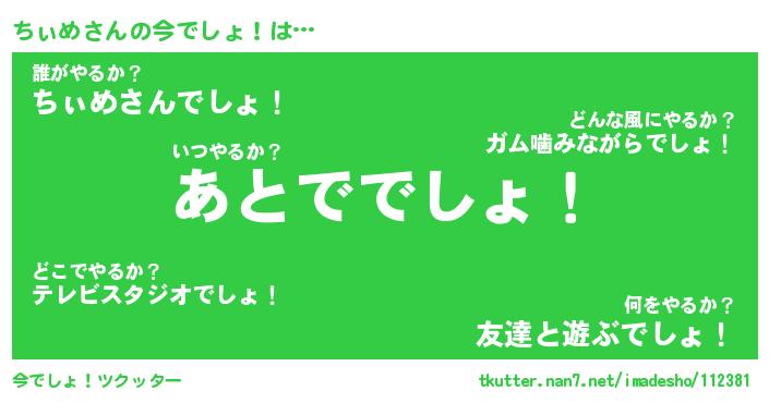 | 肩書あだ名 | 『ちぃめCEO』『ちぃめ大統領』 |