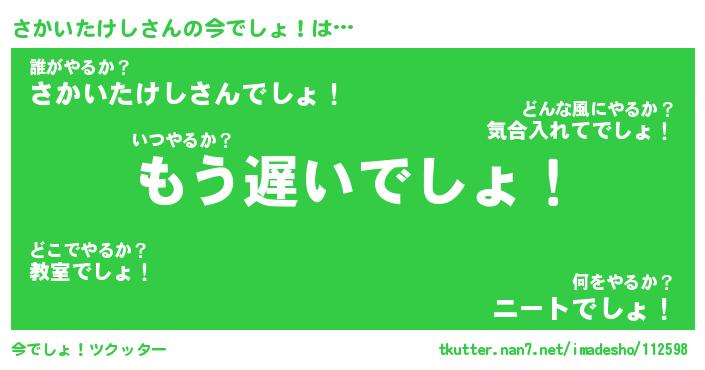 | ヒーロー風カッコイイあだ名 | 『スーパーサカイタケシ』『黄金騎士サカ』 |