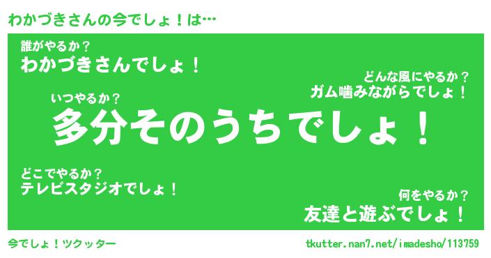 | 意味不明あだ名 | 『ペロリンわかづき』『永久保存わかづき』 |