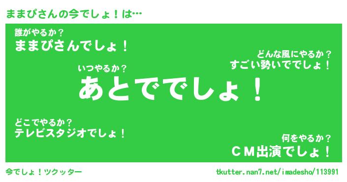 | 欧米人風あだ名 | 『マイケルままぴ』『ままぴクリステル』 |