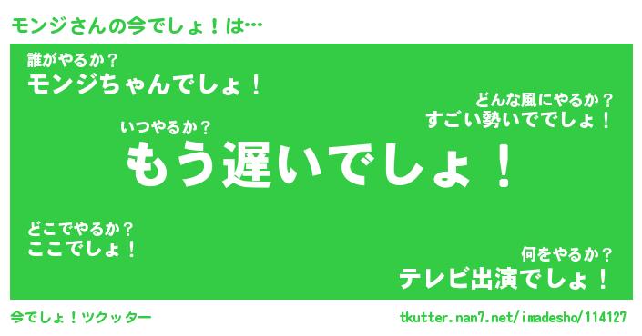 | 肩書あだ名 | 『モンジ社長』『モンジ総理大臣』 |