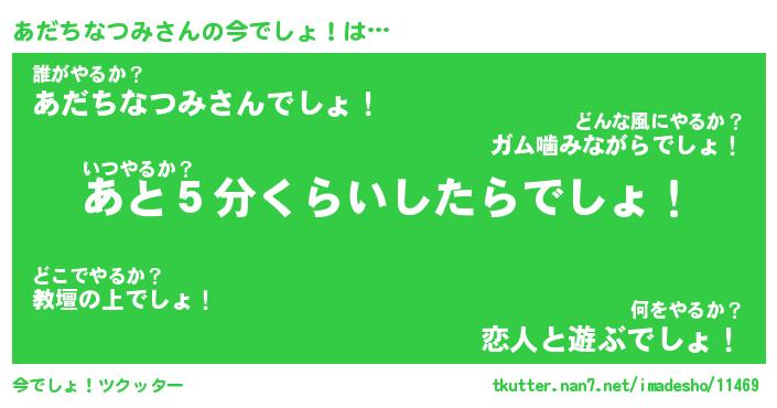 | 肩書あだ名 | 『あだちなつみ店長』『あだちなつみ団長』 |