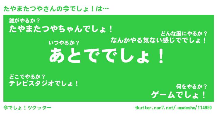 | 胡散臭い通販商品みたいなあだ名 | 『モテモテ間違いなし水晶球…その名も「たやまたつや」』 |
