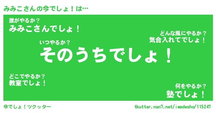 | 伝説のあだ名 | 『伝説のスナイパーみみこ』 |