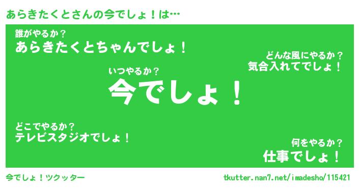 | 肩書あだ名 | 『あらきたくと社長』『あらきたくと団長』 |