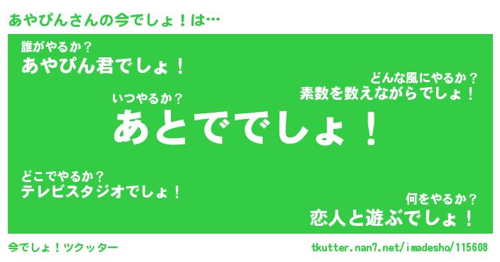 | 胡散臭い通販商品みたいなあだ名 | 『モテモテ間違いなし霊験あらたかなお札…その名も「あやぴん」』 |