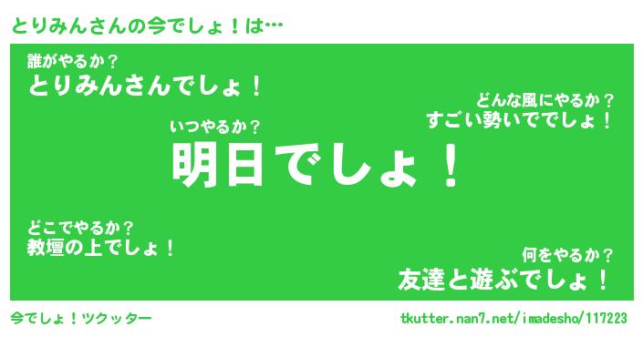 | 肩書あだ名 | 『とりみん店長』『とりみん総理大臣』 |