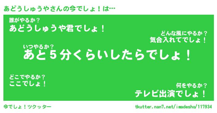 | 恥ずかしいあだ名 | 『プリティーあどうしゅうや』『あどちん』 |