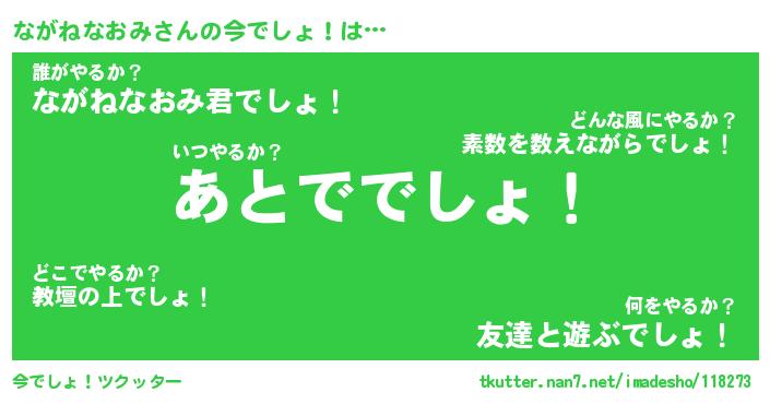 | 伝説のあだ名 | 『不死鳥のスナイパーながねなおみ』 |