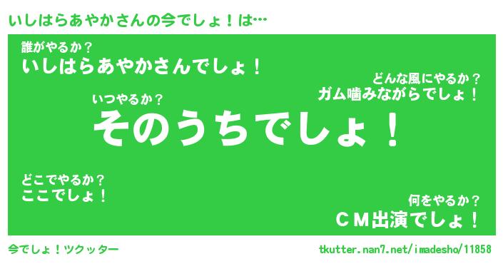| 恥ずかしいあだ名 | 『プリティーいしはらあやか』『いしちん』 |