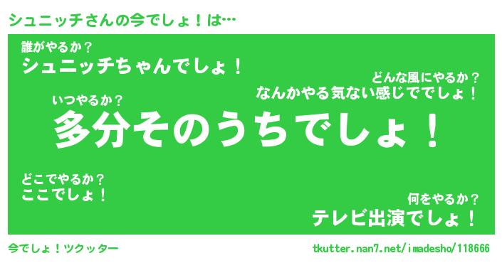 | ヘコむあだ名 | 『シュにゅー』『レバニラ』『シュお』 |