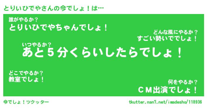 | 肩書あだ名 | 『とりいひでや社長』『とりいひでや団長』 |
