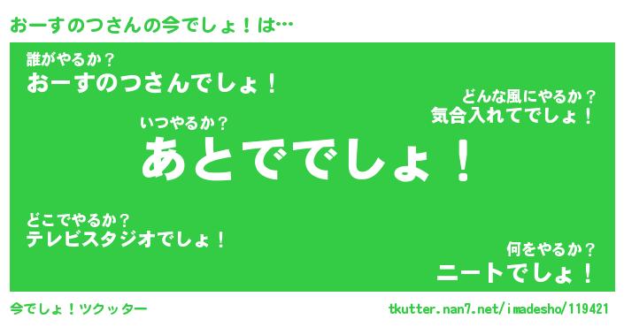 | 肩書あだ名 | 『おーすのつCEO』『おーすのつ大統領』 |
