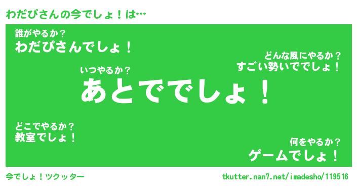 | ピコ太郎風あだ名 | 『ワコ次郎』『ピワ四郎』『ワダ六郎』 |