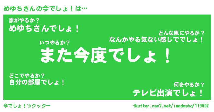 | ヘコむあだ名 | 『めゆもー』『牛乳』『めゆお』 |
