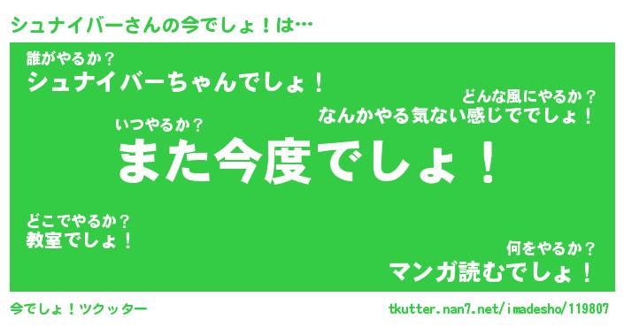 | ヒーロー風カッコイイあだ名 | 『スーパーシュナイバー』『黄金騎士シュ』 |