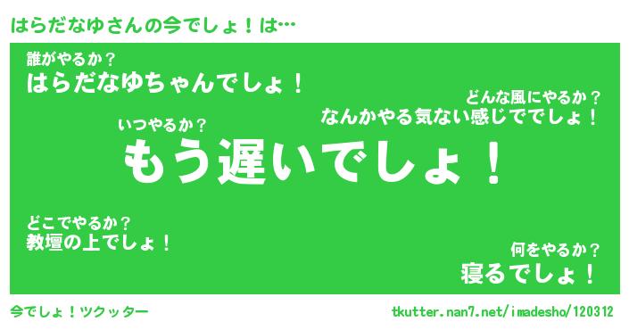 | 肩書あだ名 | 『はらだなゆ御曹司』『はらだなゆ塾長』 |