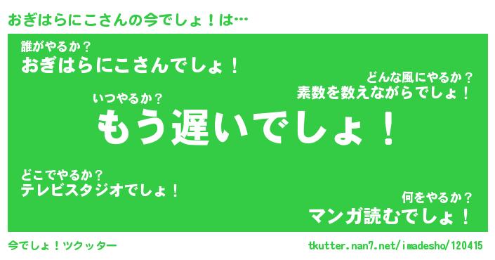 | 伝説のあだ名 | 『伝説のスナイパーおぎはらにこ』 |