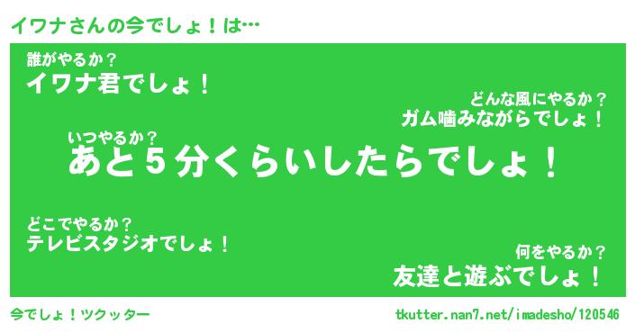| ヘコむあだ名 | 『イワにー』『なまこ酢』『イワ太郎』 |