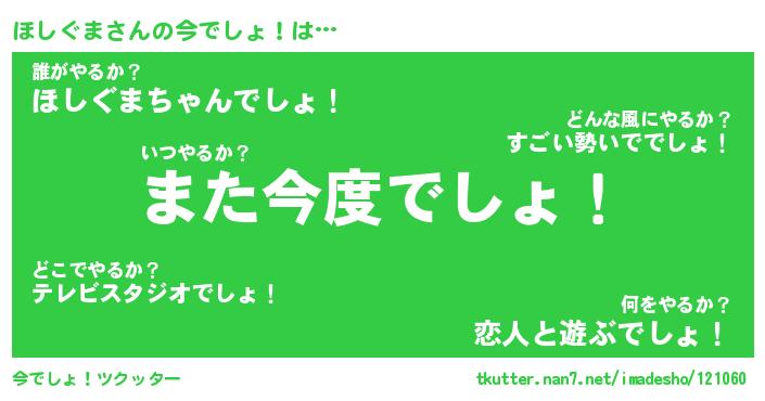 | 意味不明あだ名 | 『ペロリンほしぐま』『永久保存ほしぐま』 |