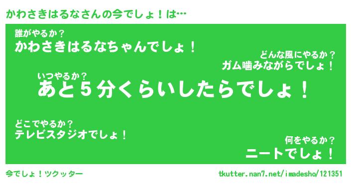 | ツイッター | かわさきはるなさんのツイッターID『namakemono_kun』 |