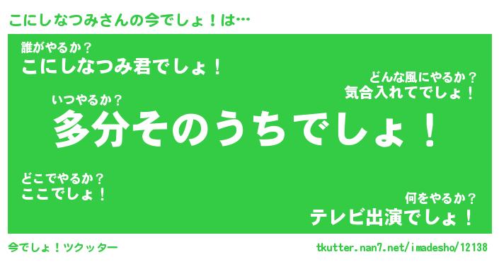 | 肩書あだ名 | 『こにしなつみ御曹司』 |