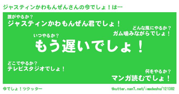 | 胡散臭い通販商品みたいなあだ名 | 『必ず成功する水晶球…その名も「ジャスティンかわもんぜん」』 |