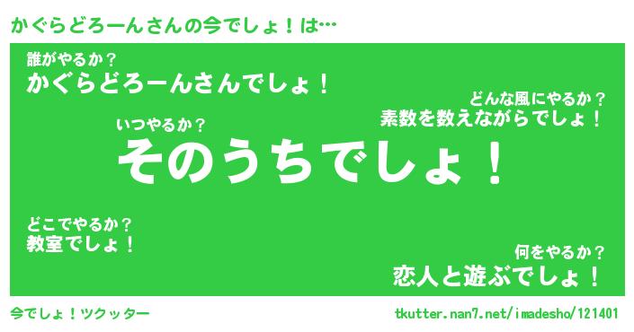 | 胡散臭い通販商品みたいなあだ名 | 『必ず成功するブレスレット…その名も「かぐらどろーん」』 |