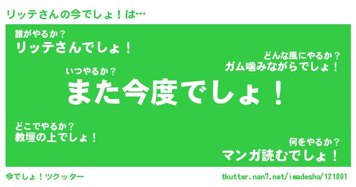 | 意味不明あだ名 | 『ペロリンリッテ』『リッテフォーエバー』 |