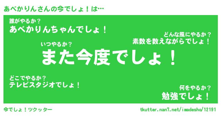 | 恥ずかしいあだ名 | 『プリティーあべかりん』『あべっちょ』 |