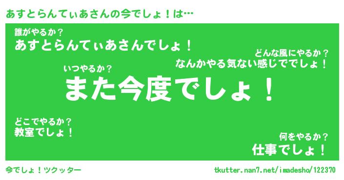 | 胡散臭い通販商品みたいなあだ名 | 『億万長者になれるブレスレット…その名も「あすとらんてぃあ」』 |