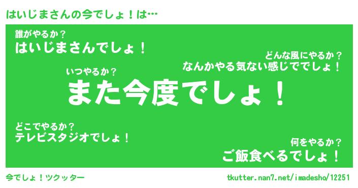 | 肩書あだ名 | 『はいじま社長』『はいじま総理大臣』 |
